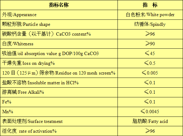产品名称:轻质活性碳酸钙(牌号:WN101)